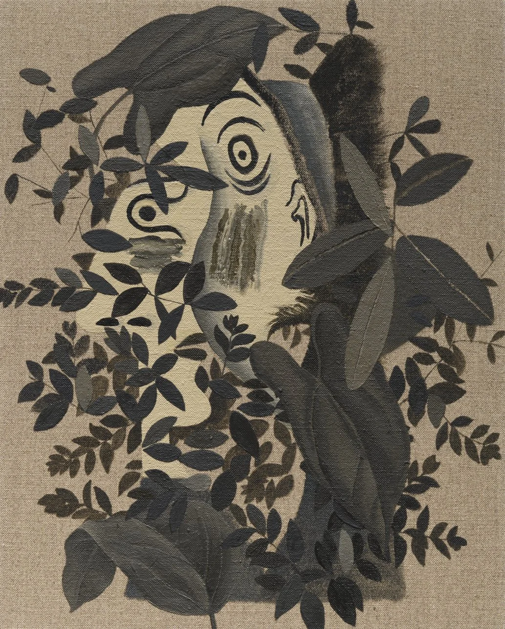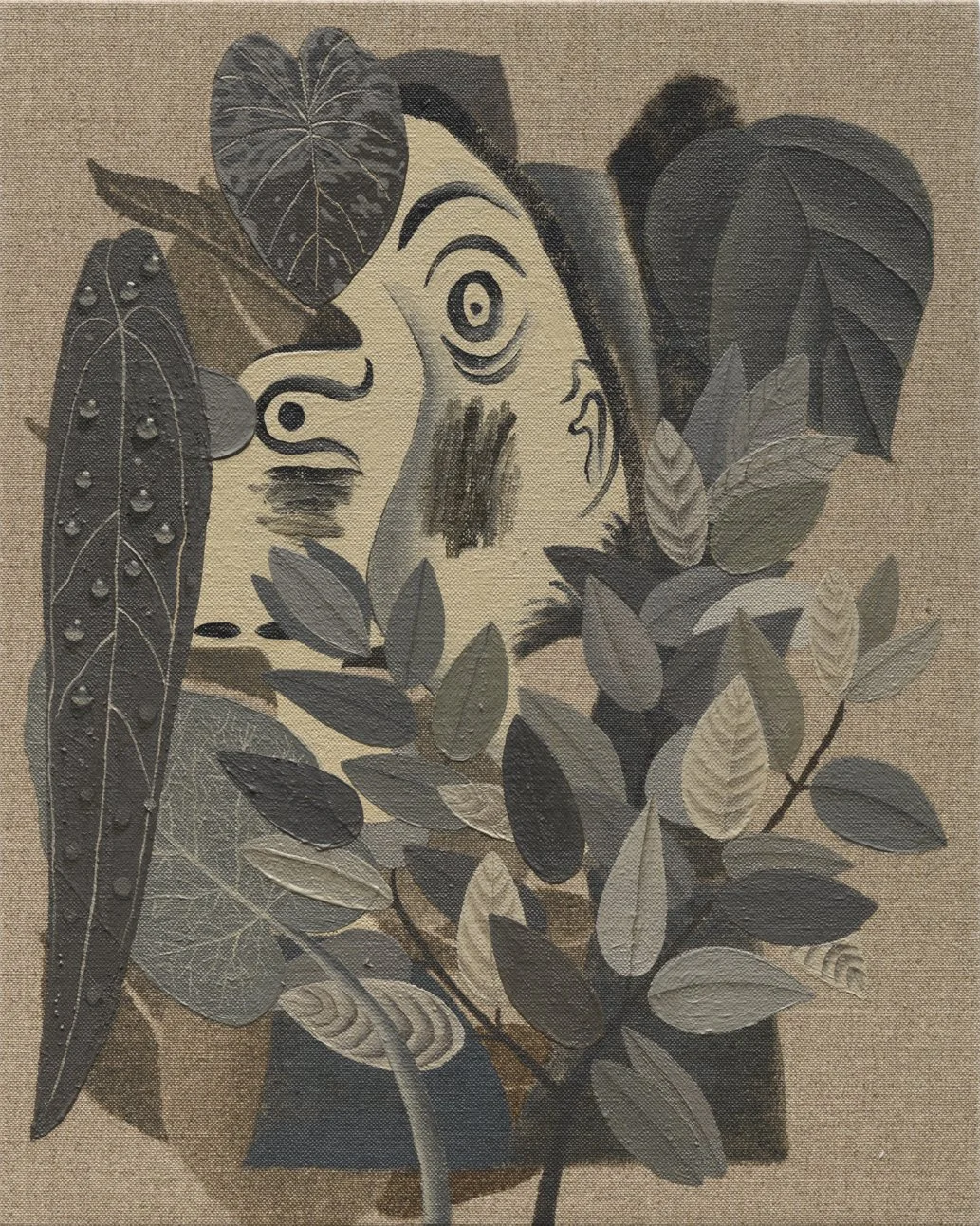 Head with Plants, 2020. Oil and spray paint on linen, 40 x 30 inches.